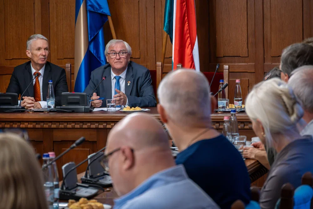 August 2025 | Mit dieser wichtigen Botschaft leitete Dr. Gerhard Papke, der Präsident der Deutsch-Ungarischen Gesellschaft, das 4. Sommercamp ein. Veranstaltet wurde es in Révfülöp am Balaton vom Deutsch-Ungarischen Institut für Europäische Zusammenarbeit am Mathias Corvinus Collegium gemeinsam mit der Deutsch-Ungarischen Gesellschaft in der Bundesrepublik Deutschland e.V. Vom 12. bis zum 17. August 2025 erfreuten sich 26 junge Teilnehmer aus Deutschland und Ungarn hochinteressanten Vorträgen, Diskussionsrunden und interaktiven Seminaren bei sommerlichem Badewetter am idyllischen Balaton. …