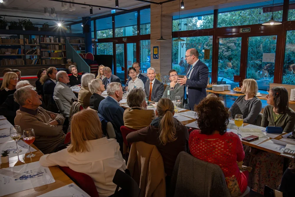 Im vollbesetzten Generalkonsulat diskutierten beide mit dem Ehrengast Eric Beißwenger, Staatsminister in Bayern für Europaangelegenheiten und Internationales, über aktuelle Fragen der deutsch-ungarischen Beziehungen und die besondere Rolle Bayerns für die deutsch-ungarische Freundschaft.